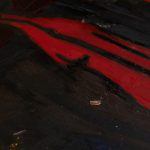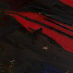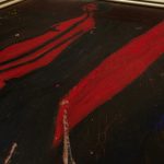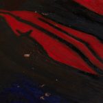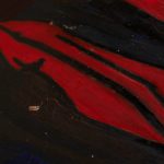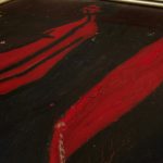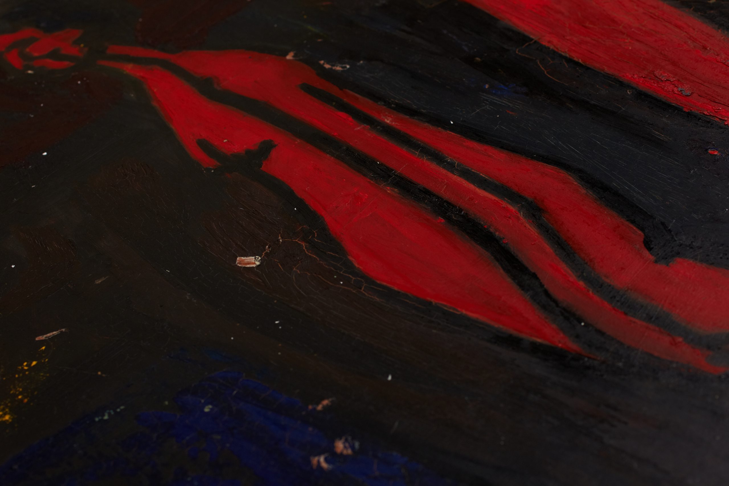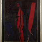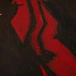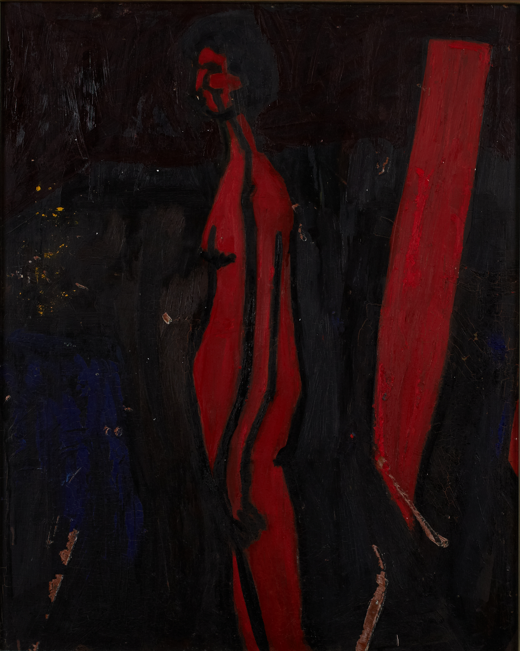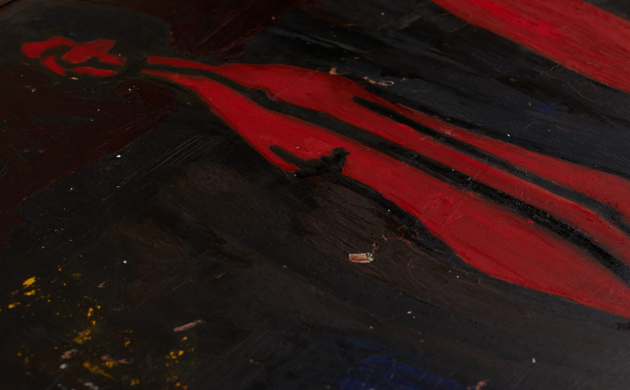 The abstract work in oil depicts a red figure side-on with unflattering features including ‘moobs’ and a large stomach.