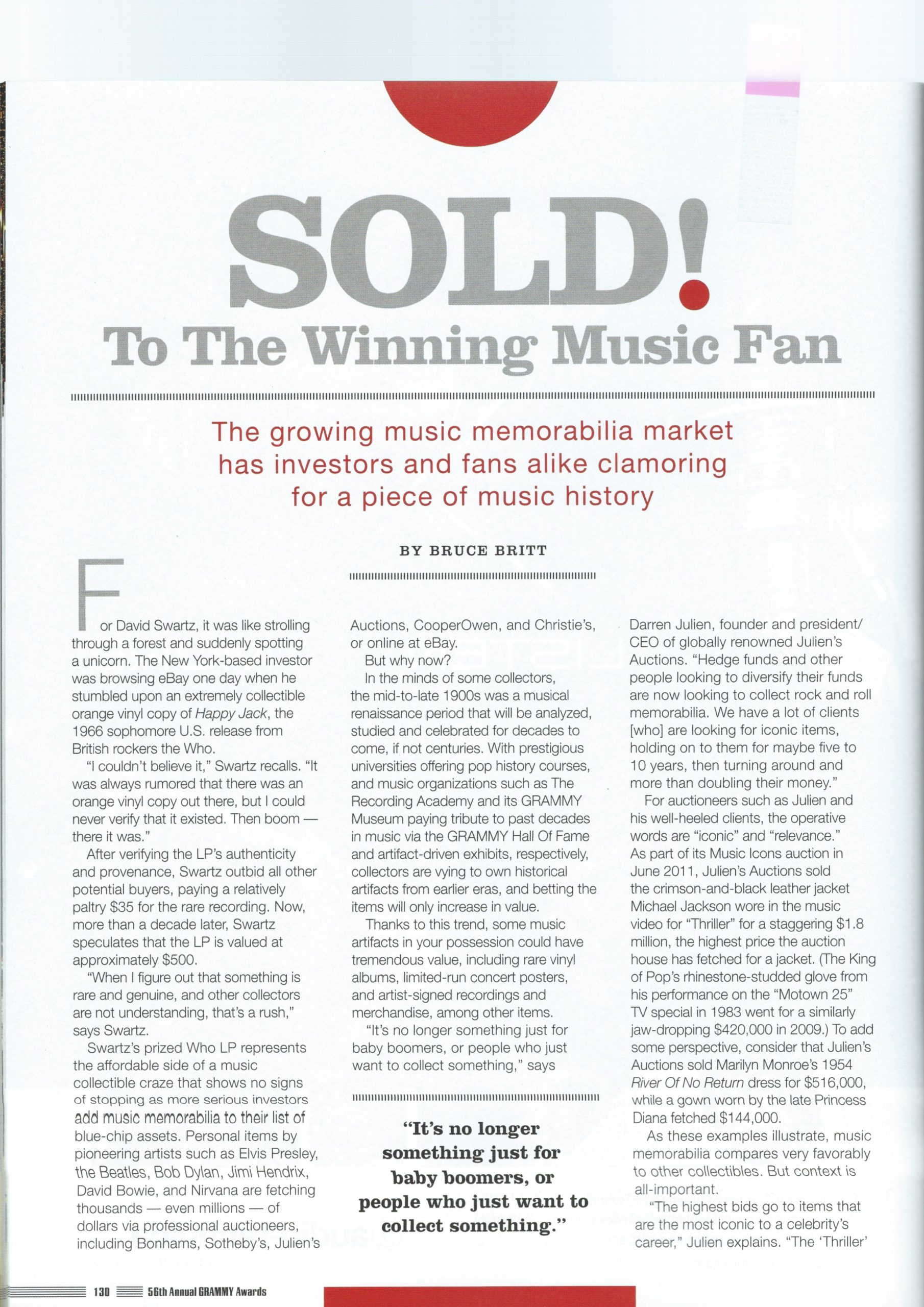 Cooper Owen featured in a five page article in the 2014 Grammy Awards programme